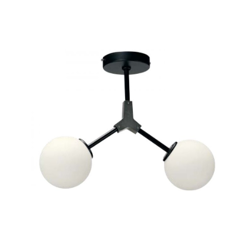 Δίφωτο μεταλλικό φωτιστικό σε μαύρο και νίκελ ματ χρώμα και λευκή οπαλίνα.