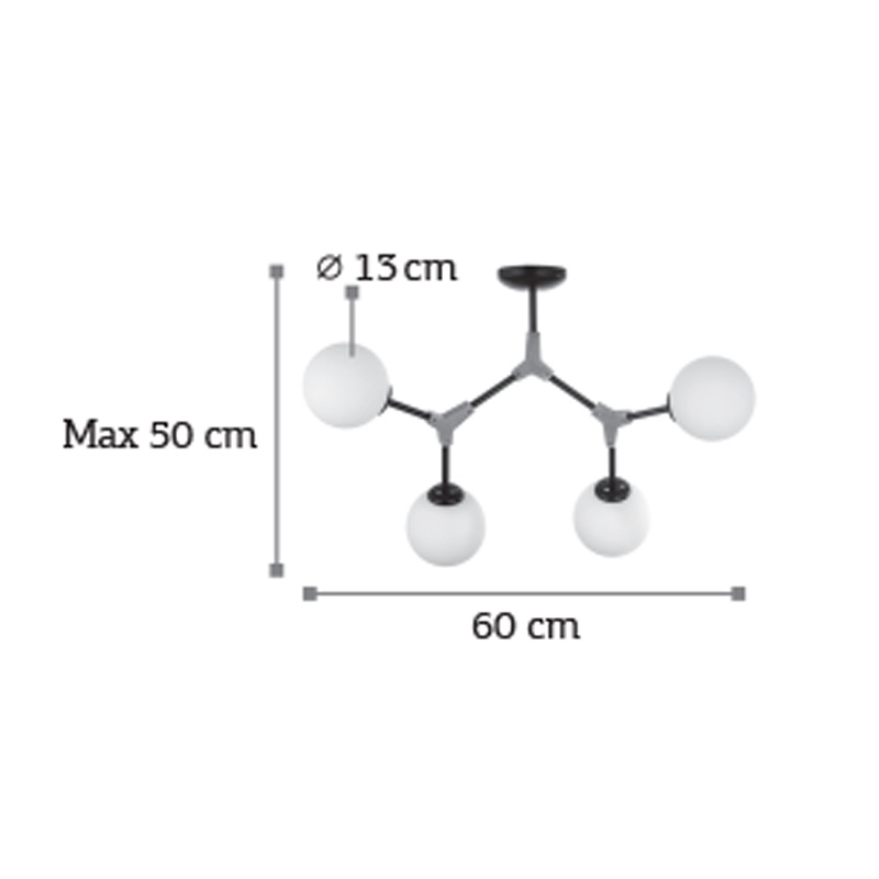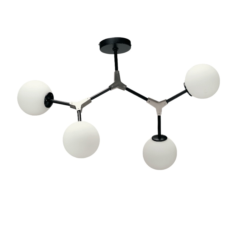Τετράφωτο μεταλλικό φωτιστικό σε μαύρο και νίκελ ματ χρώμα και λευκή οπαλίνα.