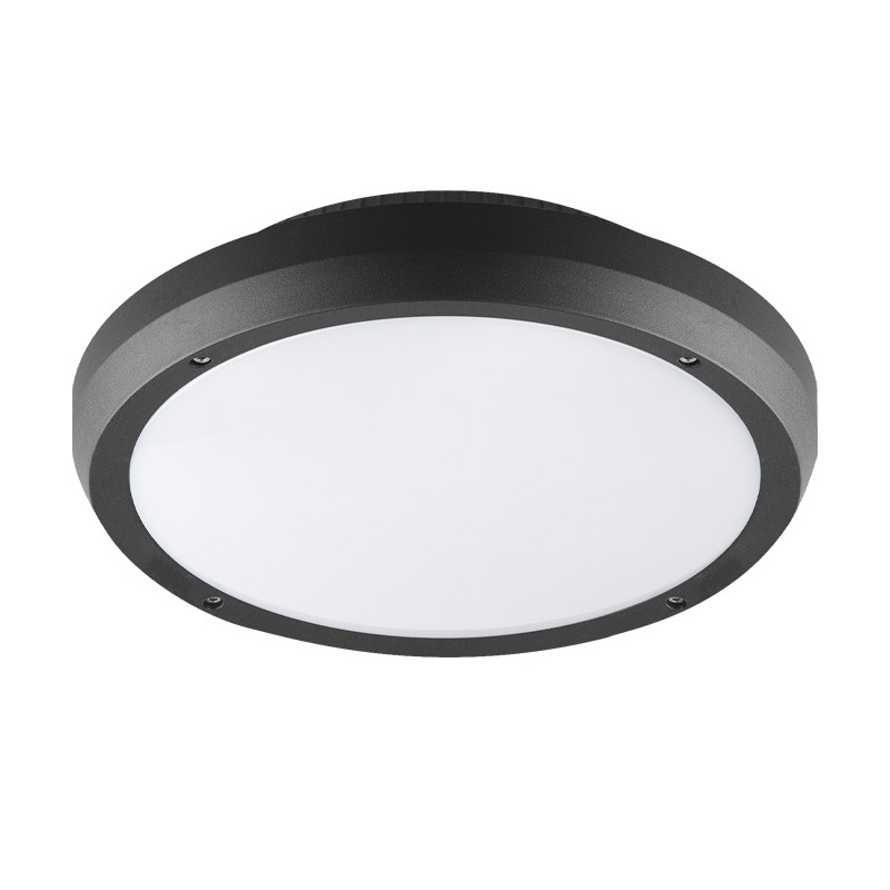 Στεγανή πλαφονιέρα από πολυκαρμπονικό υλικό στο χρώμα του γραφίτη.