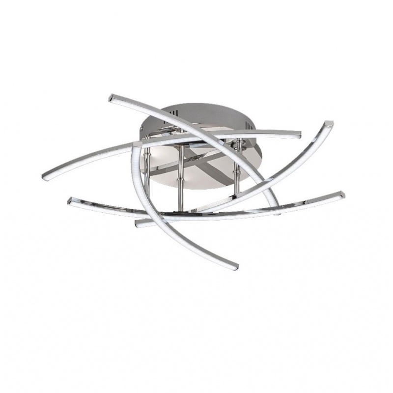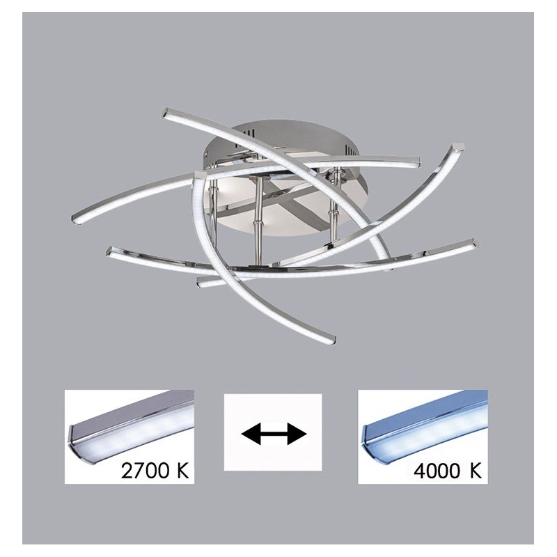 Πλαφονιέρα, πολύφωτο(πεντάφωτο) φωτιστικό οροφής, με ενσωματωμένο LED, σε χρώμιο και λευκό ματ ακρυλικό γυαλί. Είναι ντιμαριζόμενο με τηλεχειριστήριο και διαθέτει δυνατότητα αλλαγής θερμοκρασίας χρώματος.