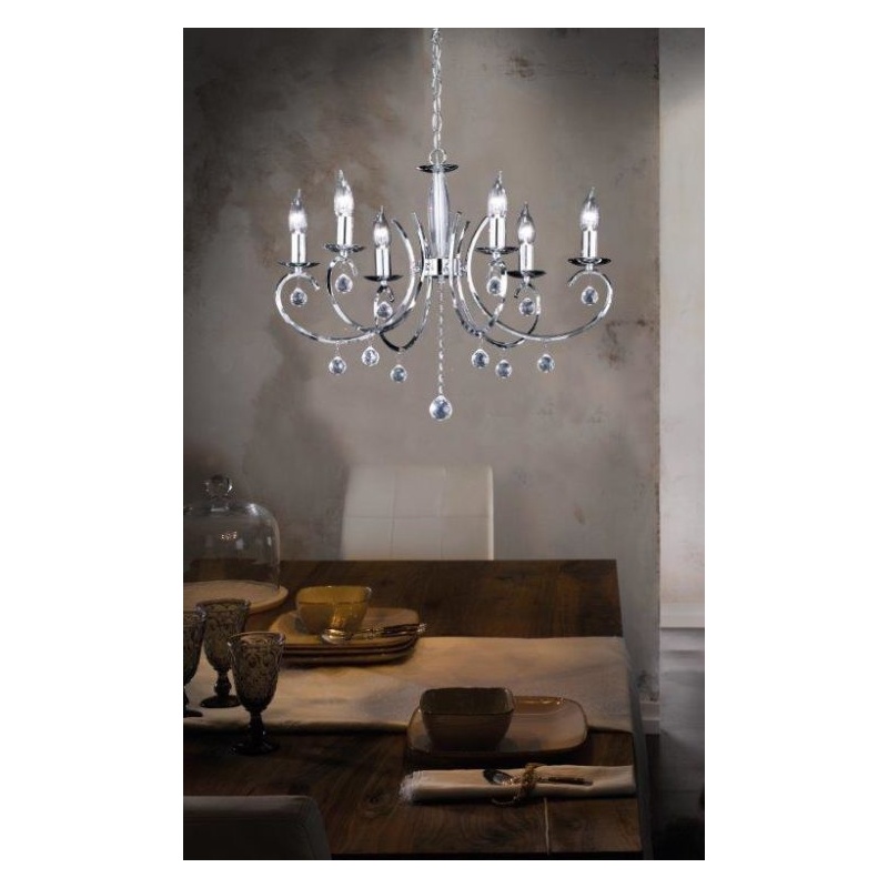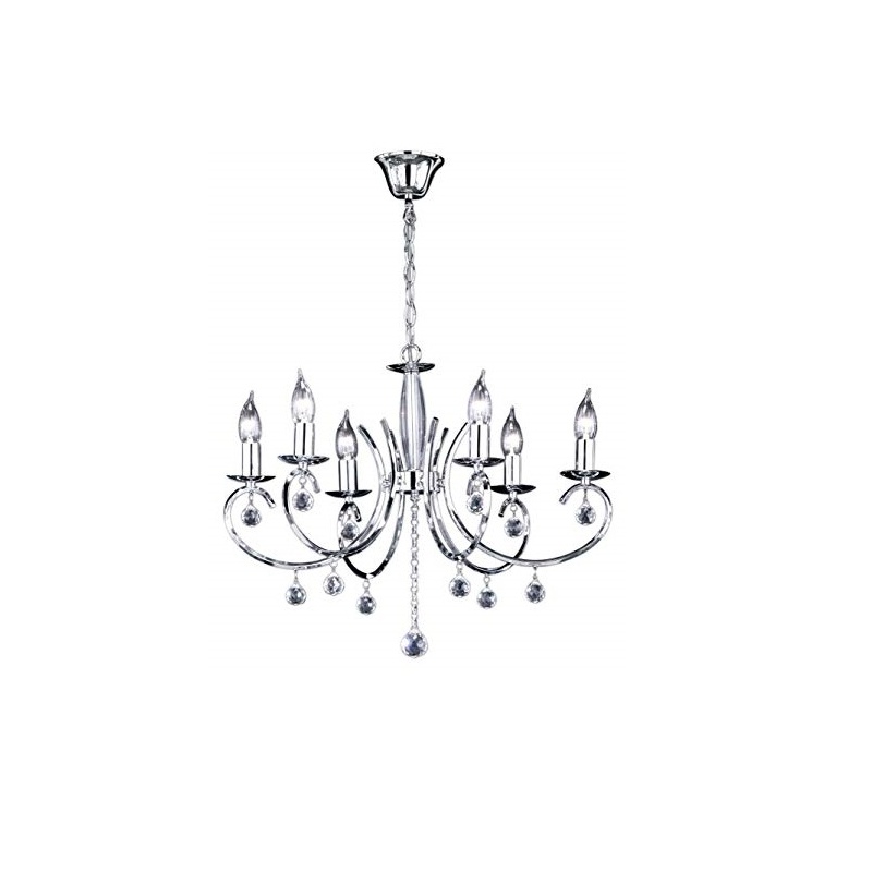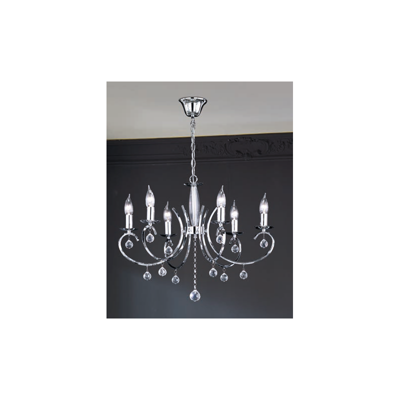 Πολυέλαιος, κρεμαστό φωτιστικό οροφής, πολύφωτο (εξάφωτο), σε χρώμιο, με κρύσταλλα.