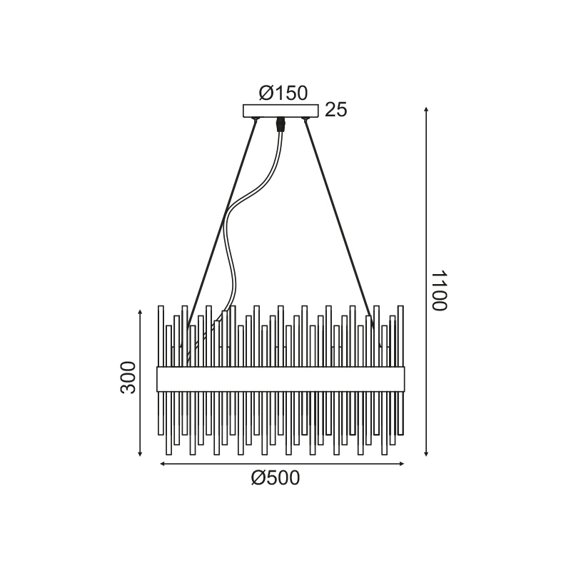 Δωδεκάφωτο κρεμαστό μεταλλικό φωτιστικό στο χρώμα του ορείχαλκου.