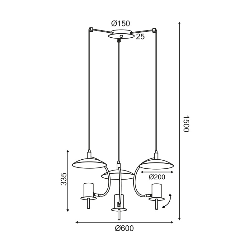 Τρίφωτο κρεμαστό μεταλλικό φωτιστικό σε μαύρο χρώμα.