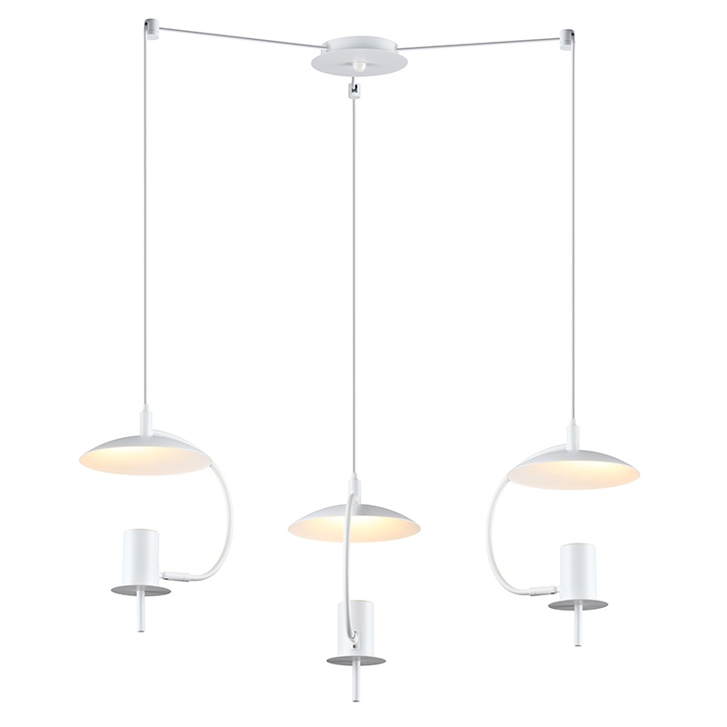 Τρίφωτο κρεμαστό μεταλλικό φωτιστικό σε λευκό χρώμα.