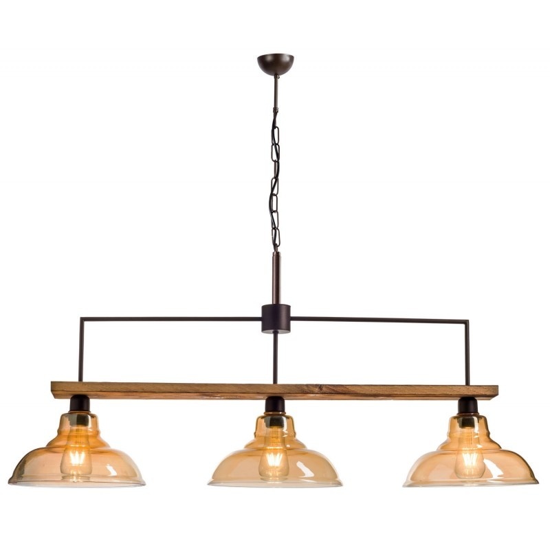 Φωτιστικό Πολύφωτο 3φ Ε27 σε μοντέρνα γραμμή με ξύλο σε χρώμα μελί smoked μεταλλικά μέρη σε σκουριά με γυαλί μελί