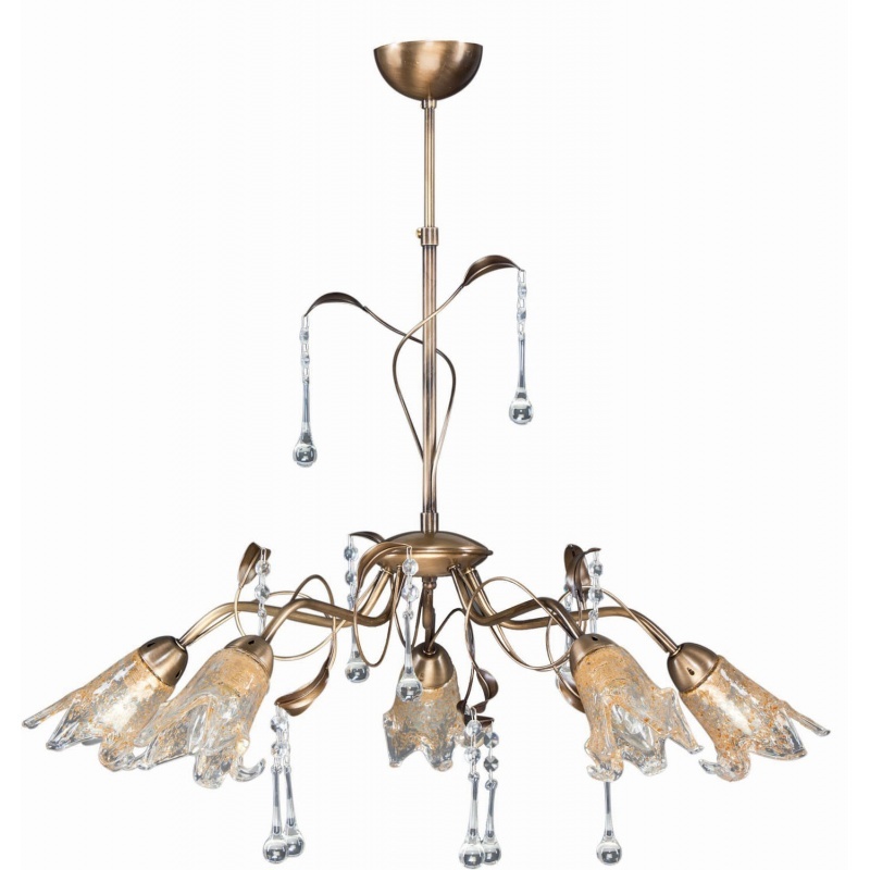 Φωτιστικό Πολύφωτο 5φ Ε14 σε κλασική γραμμή μεταλλικό σε μπρονζέ με μελί γυαλί και κρυσταλλάκια