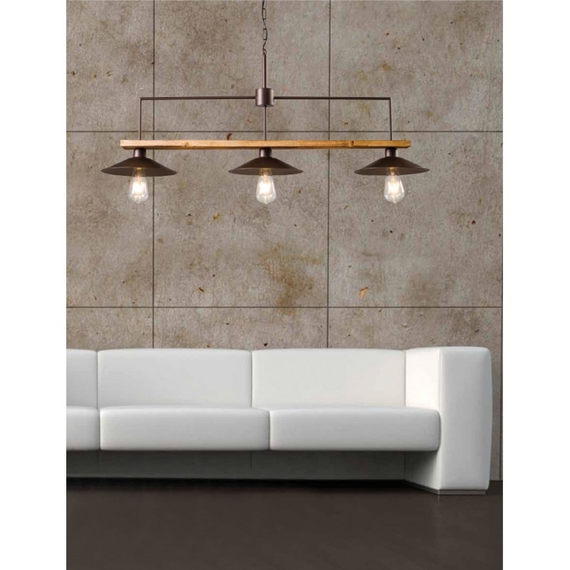 Φωτιστικό Πολύφωτο 3φ Ε27 σε μοντέρνα γραμμή με ξύλο σε χρώμα μελί smoked και μεταλλικά μέρη σε σκουριά με μεταλλικά καπέλα