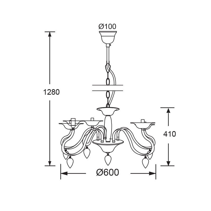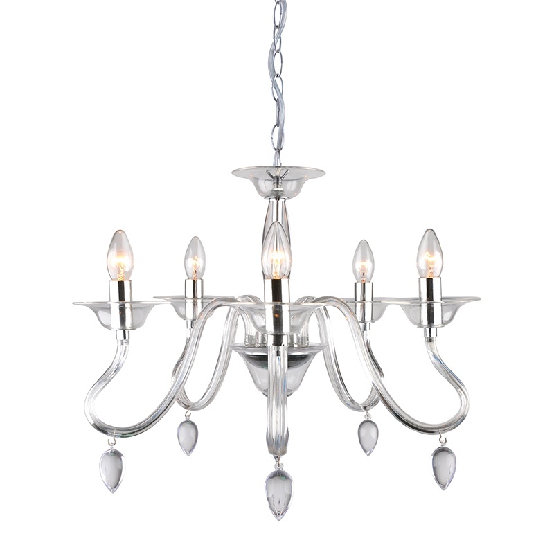 Μεταλλικό πεντάφωτο κρεμαστό φωτιστικό σε λευκό χρώμα.