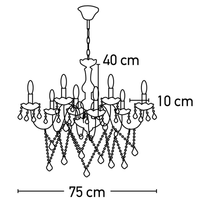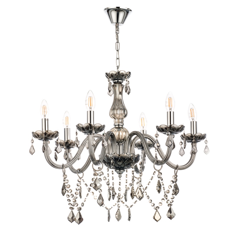 Οκτάφωτο κρεμαστό γυάλινο φωτιστικό σε φιμέ χρώμα, διακοσμημένο με κρύσταλλα.