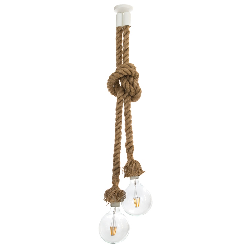 Δίφωτο κρεμαστό φωτιστικό από σχοινί σε λευκό χρώμα.