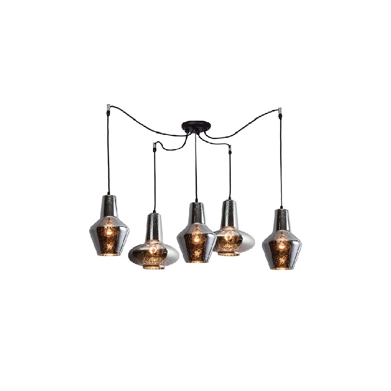 Πολύφωτο κρεμαστό φωτιστικό από γυαλί σε χρώμιο.