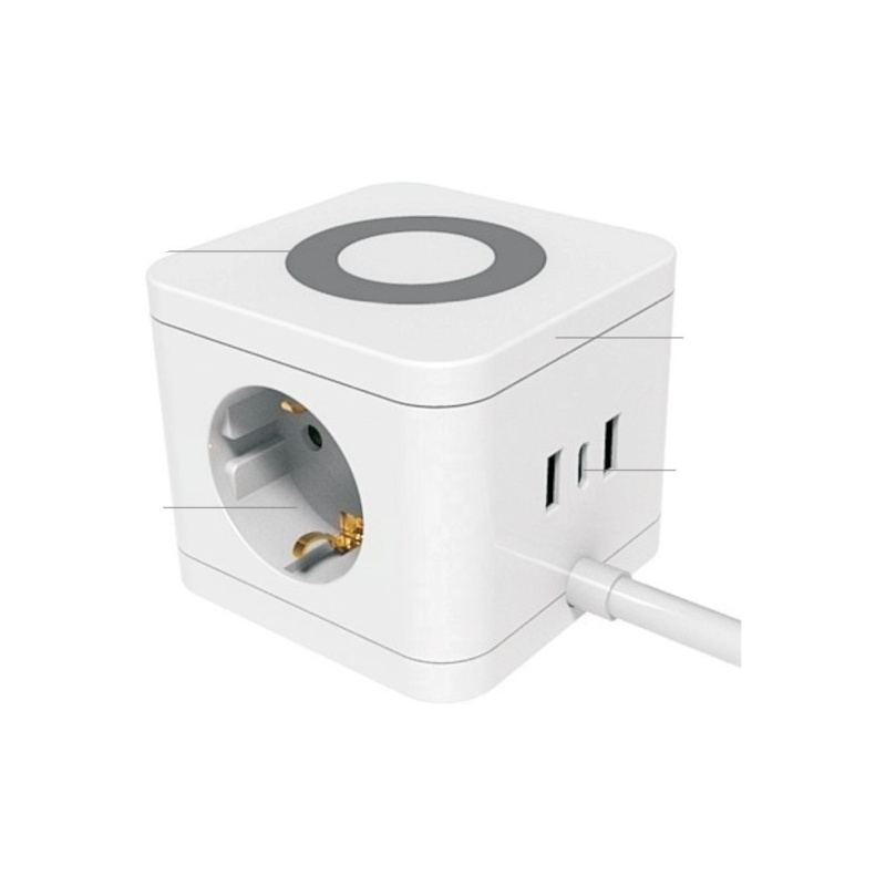 3 Πρίζες Σούκο2 USB-A1 USB-CΑσύρματη φόρτιση κινητού στο πάνω μέρος με αντιολισθητικό δακτύλιο.