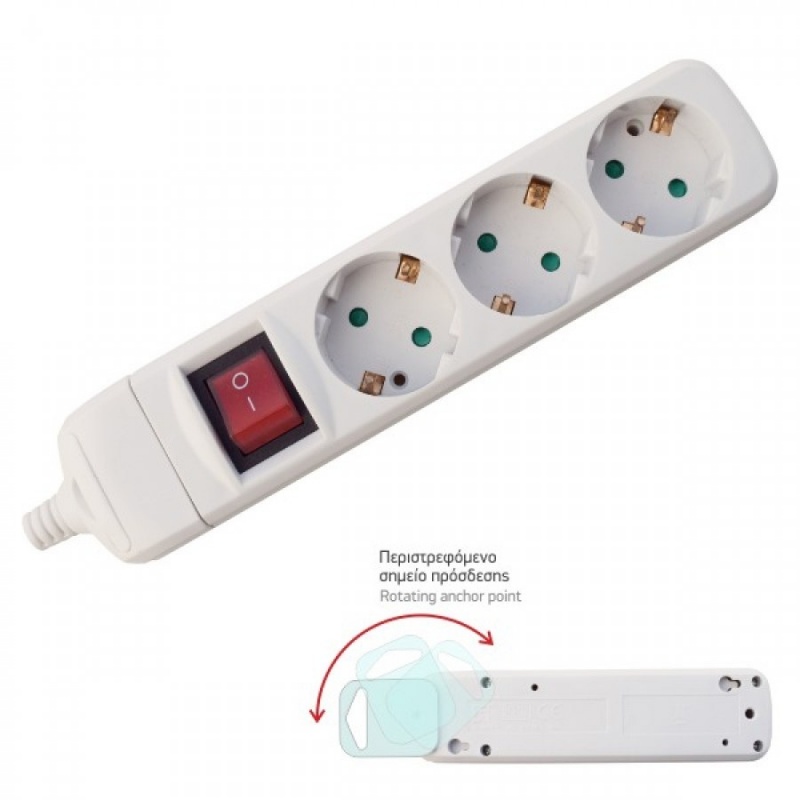 Lucas Πολύπριζο 3 Θέσεων με διακόπτη & καλώδιο 3m 3x1.5mm² Λευκό (V03B3K)