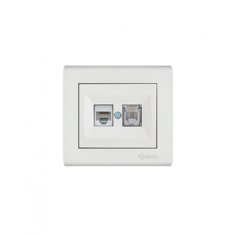 Makel Manolya Πρίζα Τηλεφώνου RJ11 & Δικτύου Data RJ45 Cat5 Λευκή (41001037)