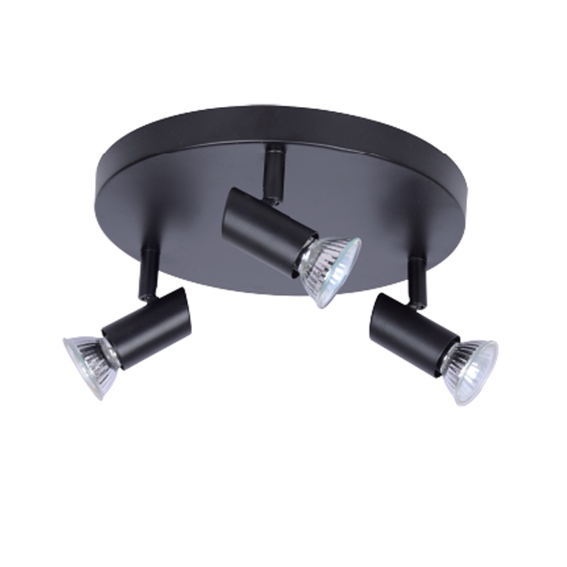 Μεταλλικό τρίφωτο spot οροφής σε μαύρο χρώμα.
