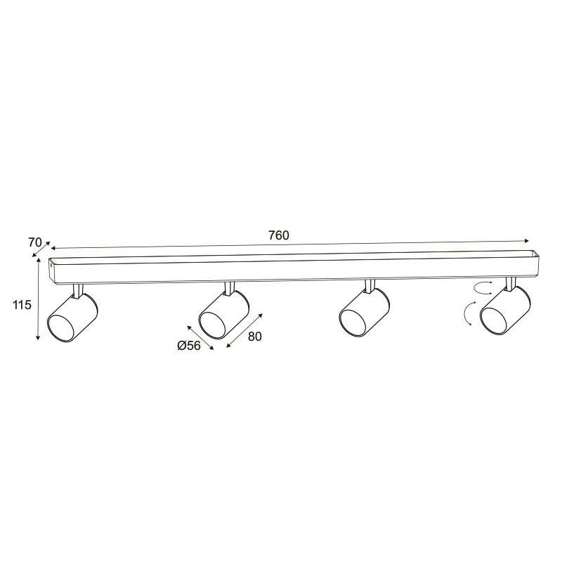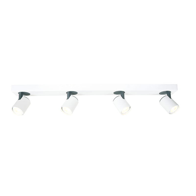 Τετράφωτο φωτιστικό από αλουμίνιο για τοποθέτηση σε οροφή ή τοίχο σε λευκό χρώμα και γκρι λεπτομέρεια.