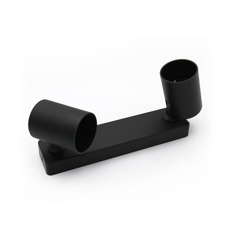Δίφωτο φωτιστικό σποτ από αλουμίνιο για τοποθέτηση σε οροφή ή τοίχο σε μαύρο χρώμα.