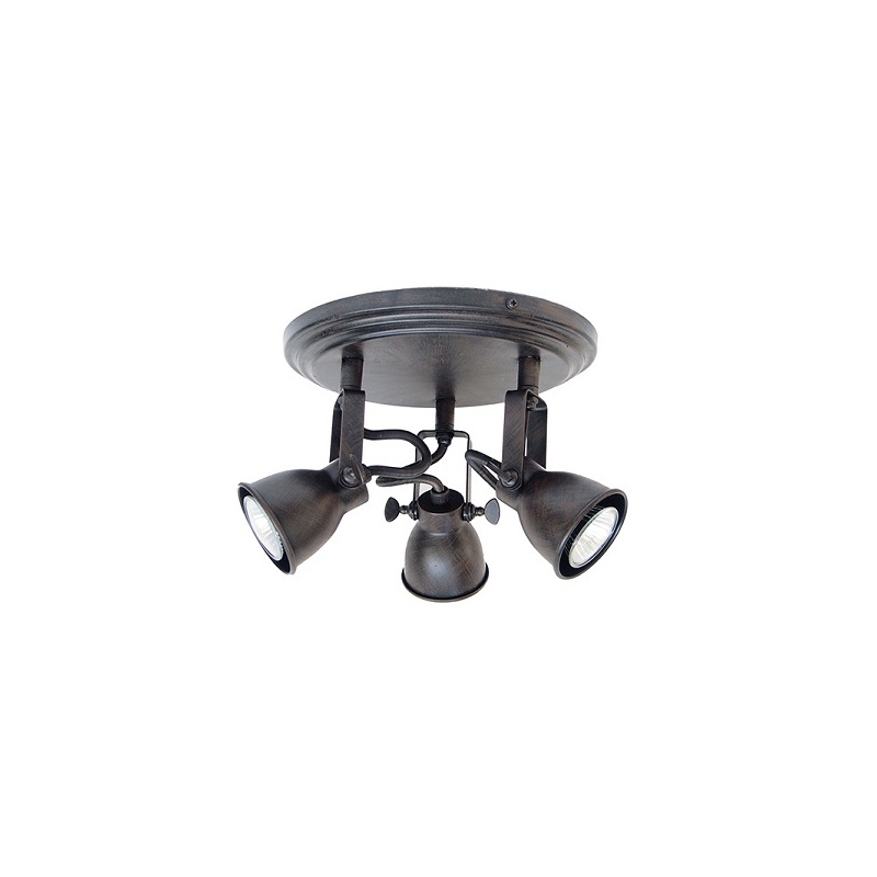 Τρίφωτο μεταλλικό φωτιστικό οροφής σε καφέ χρώμα.