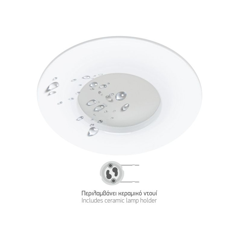 Λευκό αδιάβροχο σώμα αλουμινίου. Περιλαμβάνει κεραμικό ντουί GU10.