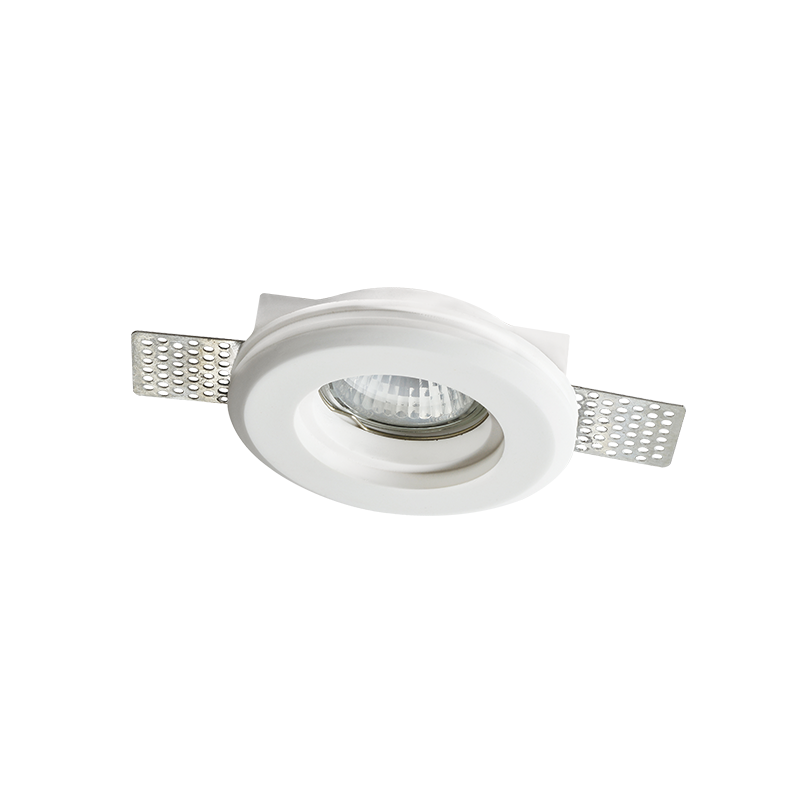 Χωνευτό στρογγυλό γύψινο φωτιστικό σε λευκό χρώμα.