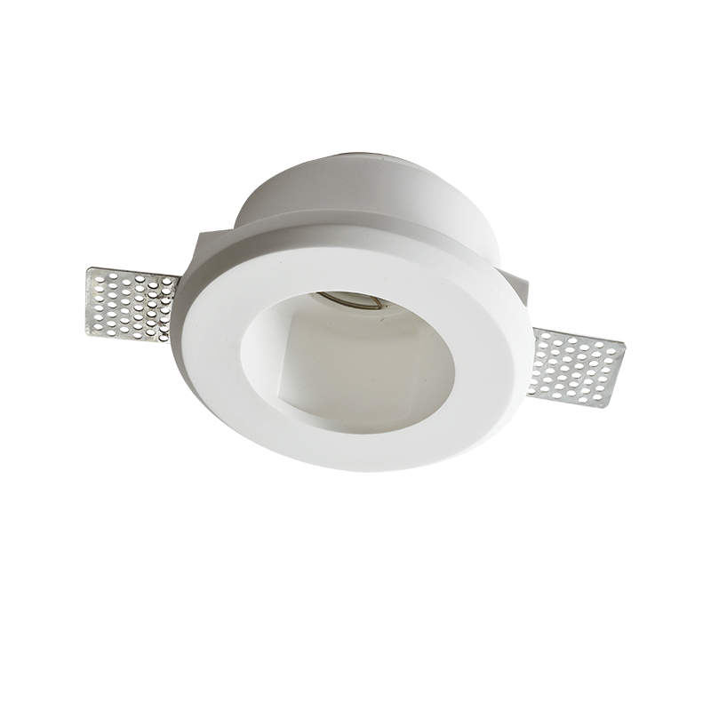Χωνευτό στρογγυλό γύψινο φωτιστικό σε λευκό χρώμα.