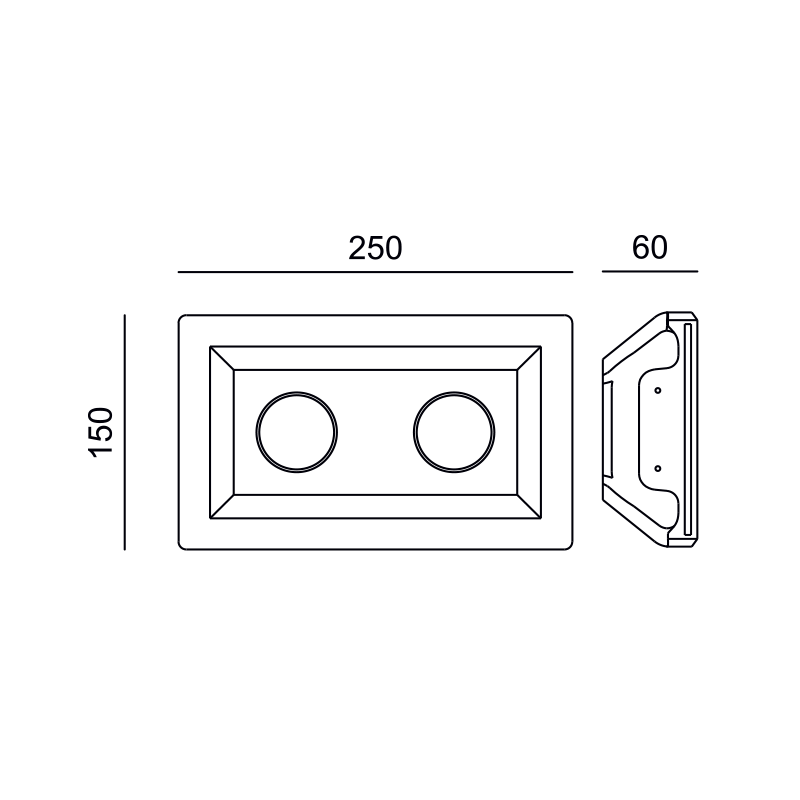 Χωνευτό γύψινο δίφωτο φωτιστικό σε λευκό χρώμα.